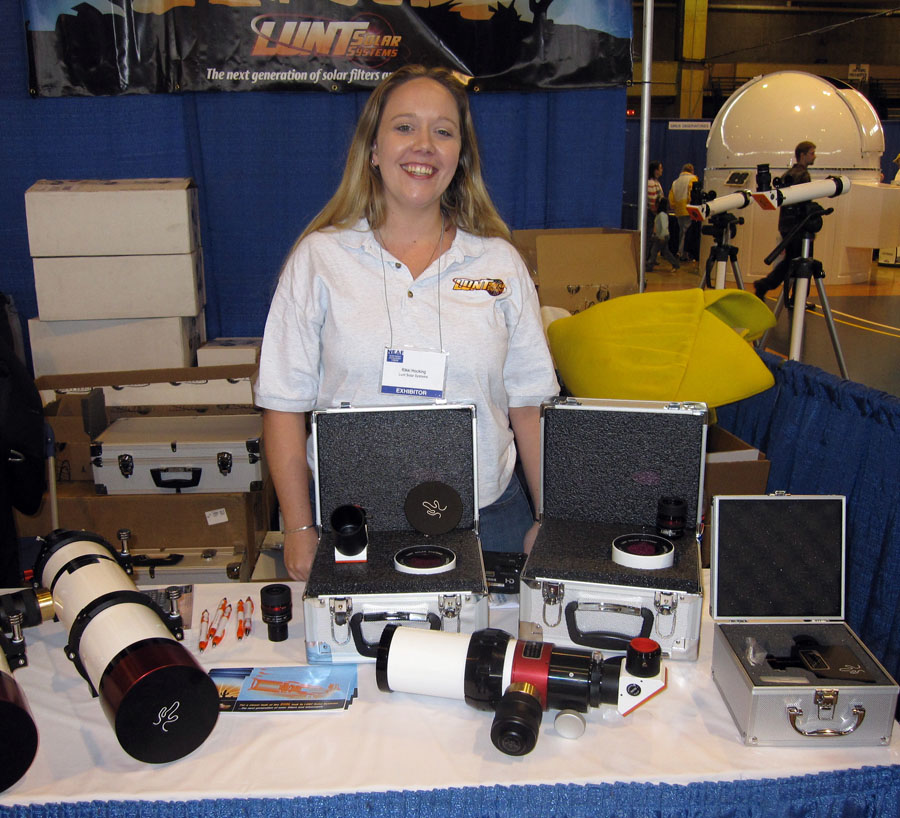 I'm very interested in learning more about solar observing so I spent some time at the Lunt Solar Systems booth talking to Rikki Hocking about solar telescopes – how they're constructed and how they work. Rikki was very helpful and I learned a lot. Of course, now I have something else on my wish list – a brand new solar scope! This is Rikki at the Lunt booth: