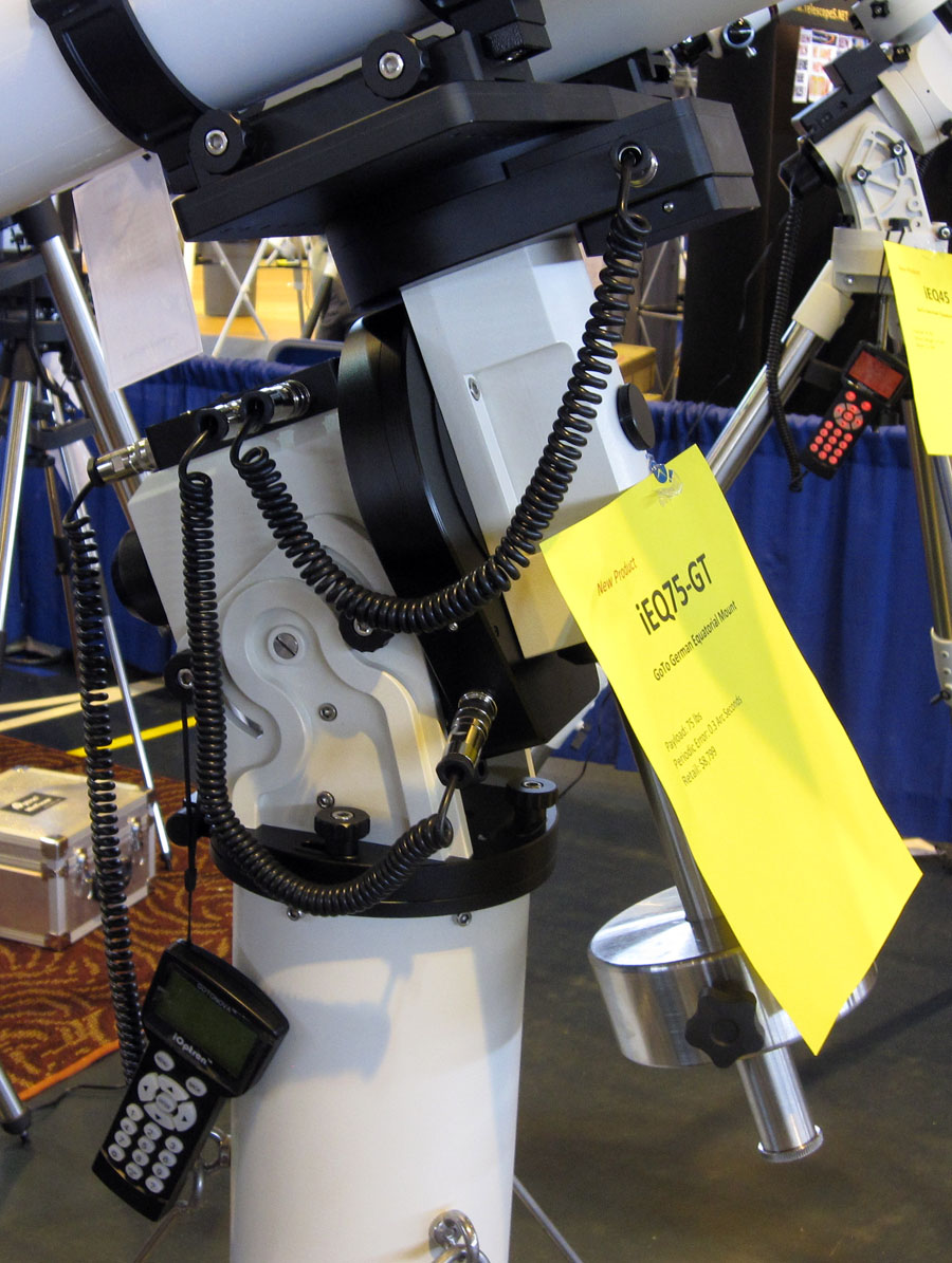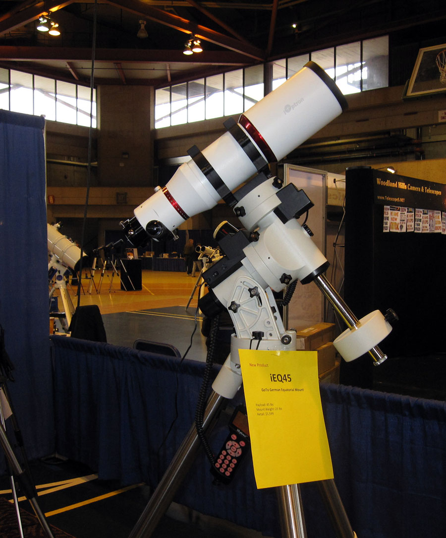 Many of you are probably familiar with the iOptron MiniTower and MiniTower Pro mounts. And, you may have heard about their new line of German equatorial mounts. Both of the new mounts were at NEAF. This image shows the iEQ45 which has a payload capacity of 45 lbs and a mount weight of 25 lbs:
