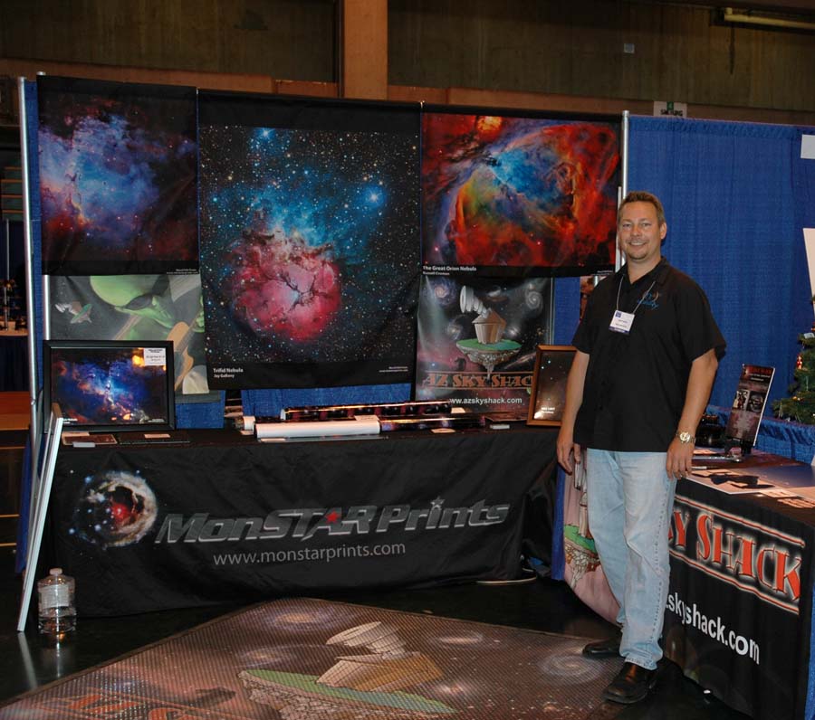 Lance Frederick, owner of Monstar Prints, has a unique business. He provides vinyl banners, table throws, scope wraps, shack wraps and MonSTAR prints for the individual astronomers, clubs and other organizations. You can see some of his MonSTAR prints in the image below: